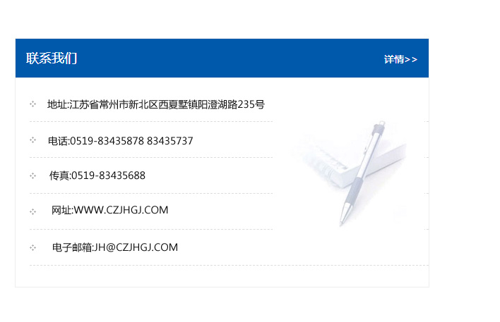 地址:常州市新北區(qū)友邦商務(wù)大廈1幢16、17層  電話:0519-85101652  傳真:0519-85112595  郵編:213022  網(wǎng)址:www_cz-jiayue_cn.juntidanbai.com  郵箱:xiajifengaa@163.com